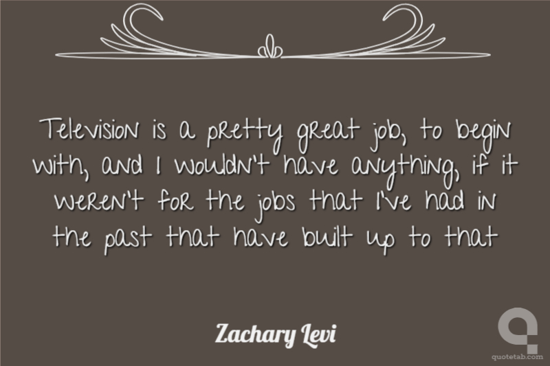 Television is a pretty great job, to begin with, and I wouldn't have anything, if it weren't for the jobs that I've had in the past that have built up to that