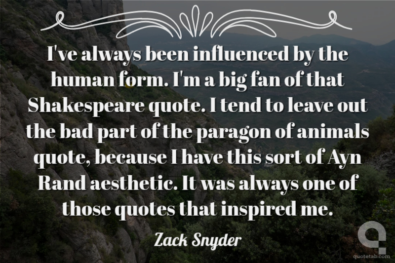 I've always been influenced by the human form. I'm a big fan of that Shakespeare quote. I tend to leave out the bad part of the paragon of animals quote, because I have this sort of Ayn Rand aesthetic. It was always one of those quotes that inspired me.