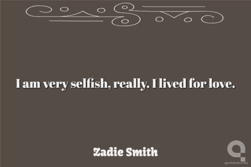 I am very selfish, really. I lived for love.
