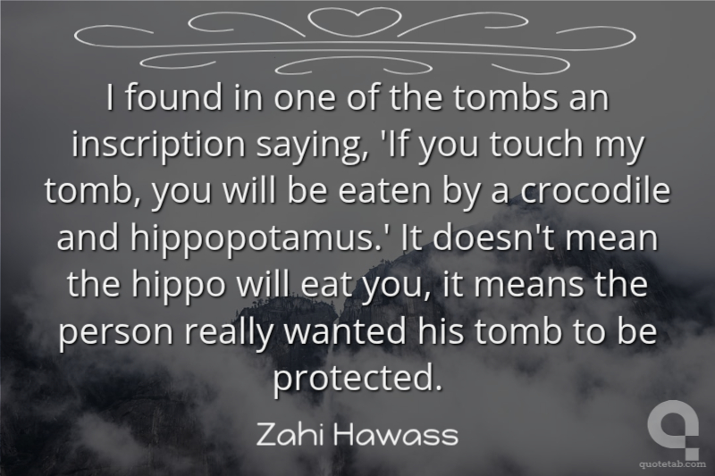 I found in one of the tombs an inscription saying, 'If you touch my tomb, you will be eaten by a crocodile and hippopotamus.' It doesn't mean the hippo will eat you, it means the person really wanted his tomb to be protected.