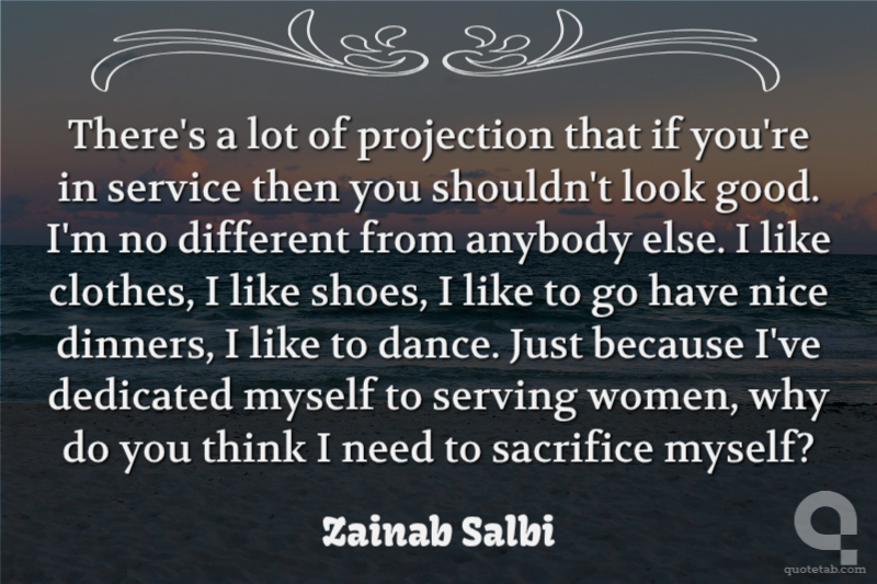 There's a lot of projection that if you're in service then you shouldn't look good. I'm no different from anybody else. I like clothes, I like shoes, I like to go have nice dinners, I like to dance. Just because I've dedicated myself to serving women, why do you think I need to sacrifice myself?