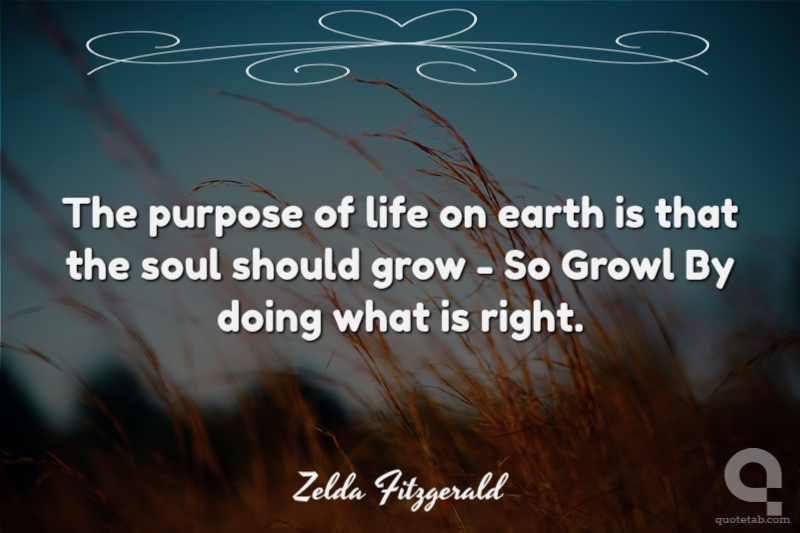 The purpose of life on earth is that the soul should grow - So Growl By doing what is right.