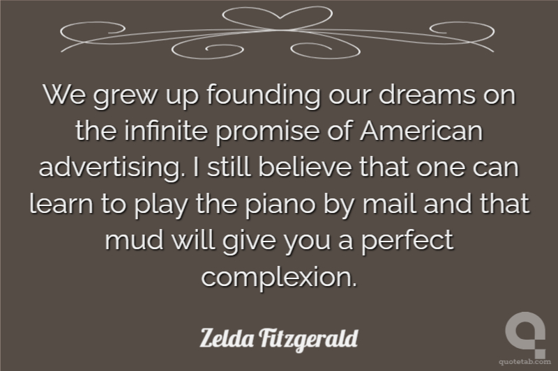 We grew up founding our dreams on the infinite promise of American advertising. I still believe that one can learn to play the piano by mail and that mud will give you a perfect complexion.