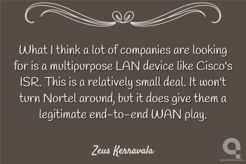 What I think a lot of companies are looking for is a multipurpose LAN device like Cisco's ISR. This is a relatively small deal. It won't turn Nortel around, but it does give them a legitimate end-to-end WAN play.