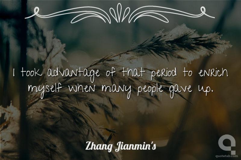 I took advantage of that period to enrich myself when many people gave up.