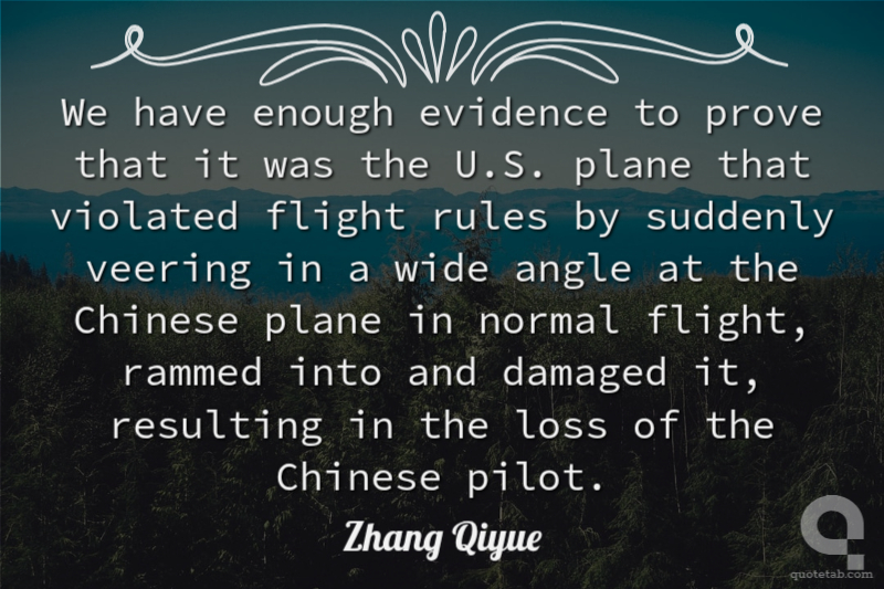 We have enough evidence to prove that it was the U.S. plane that violated flight rules by suddenly veering in a wide angle at the Chinese plane in normal flight, rammed into and damaged it, resulting in the loss of the Chinese pilot.