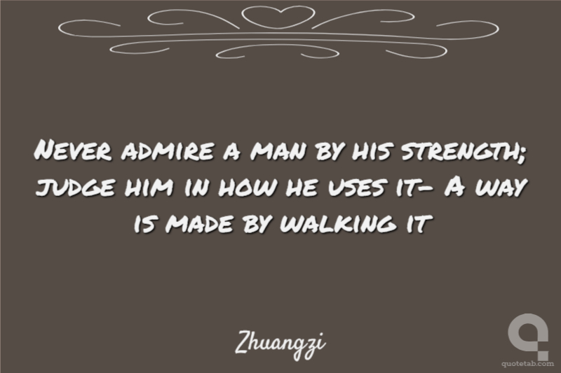 Never admire a man by his strength; judge him in how he uses it- A way is made by walking it
