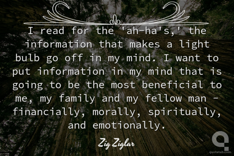 I read for the 'ah-ha's,' the information that makes a light bulb go off in my mind. I want to put information in my mind that is going to be the most beneficial to me, my family and my fellow man - financially, morally, spiritually, and emotionally.