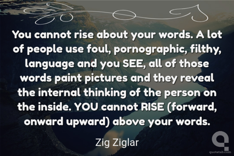 You cannot rise about your words. A lot of people use foul, pornographic, filthy, language and you SEE, all of those words paint pictures and they reveal the internal thinking of the person on the inside. YOU cannot RISE (forward, onward upward) above your words.