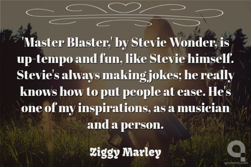 'Master Blaster,' by Stevie Wonder, is up-tempo and fun, like Stevie himself. Stevie's always making jokes; he really knows how to put people at ease. He's one of my inspirations, as a musician and a person.