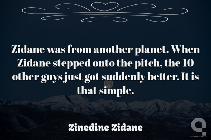 Zidane was from another planet. When Zidane stepped onto the pitch, the 10 other guys just got suddenly better. It is that simple.