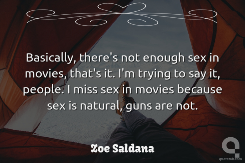 Basically, there's not enough sex in movies, that's it. I'm trying to say it, people. I miss sex in movies because sex is natural, guns are not.