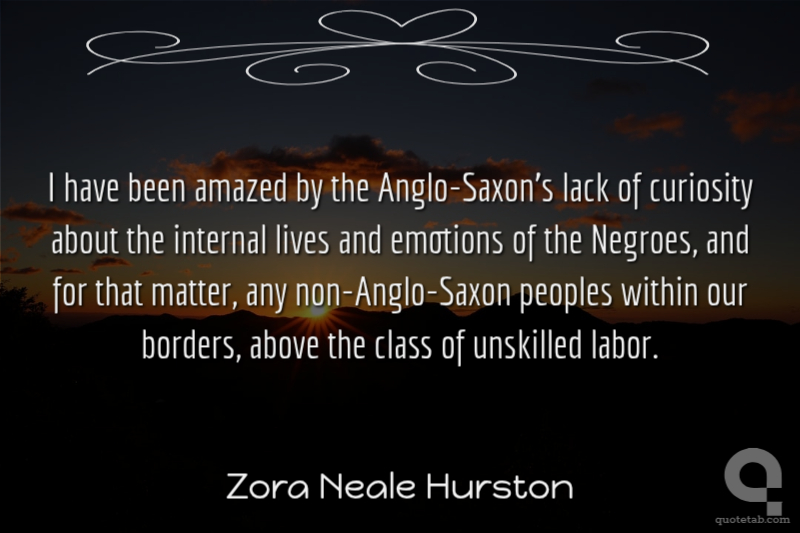 I have been amazed by the Anglo-Saxon's lack of curiosity about the internal lives and emotions of the Negroes, and for that matter, any non-Anglo-Saxon peoples within our borders, above the class of unskilled labor.